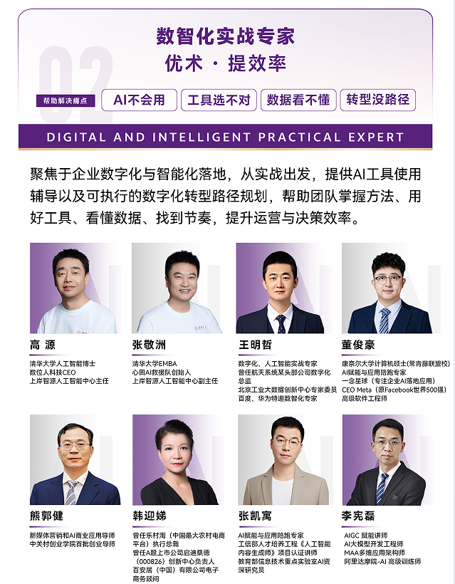帮助解决痛点:AI 不会用、工具选不对、数据看不懂、转型没路径