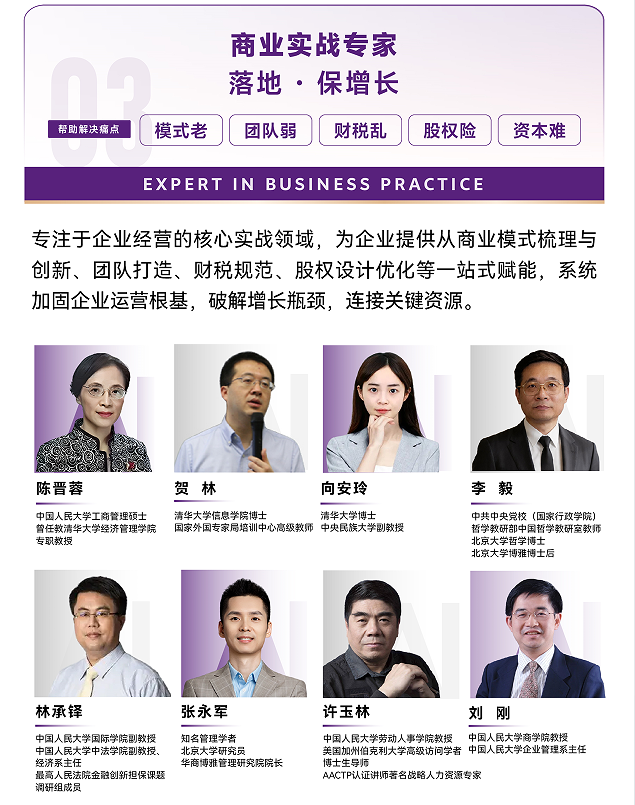 帮助解决痛点:模式老、团队弱、财税乱、股权险、资本难